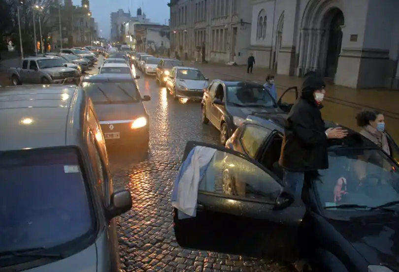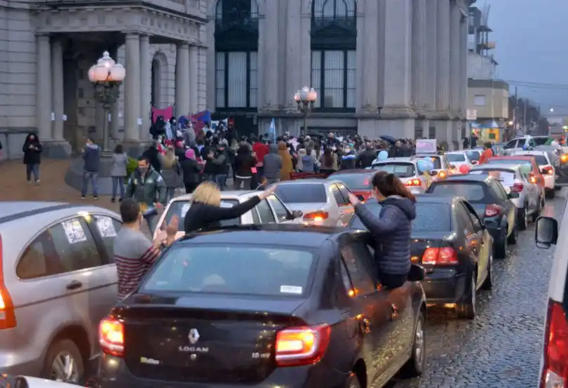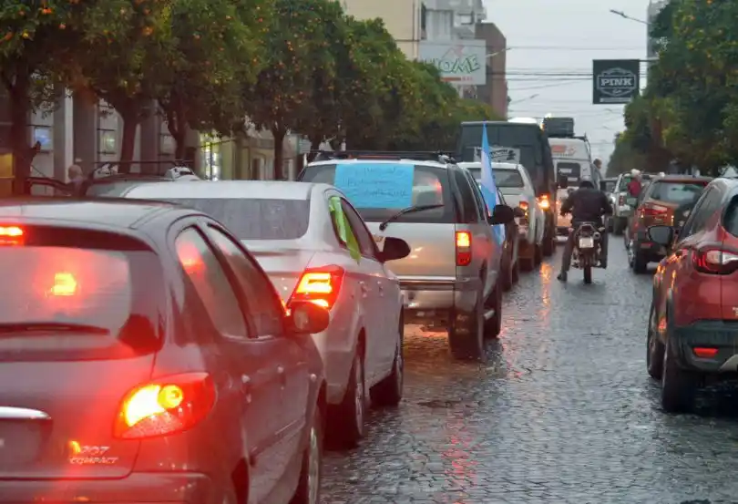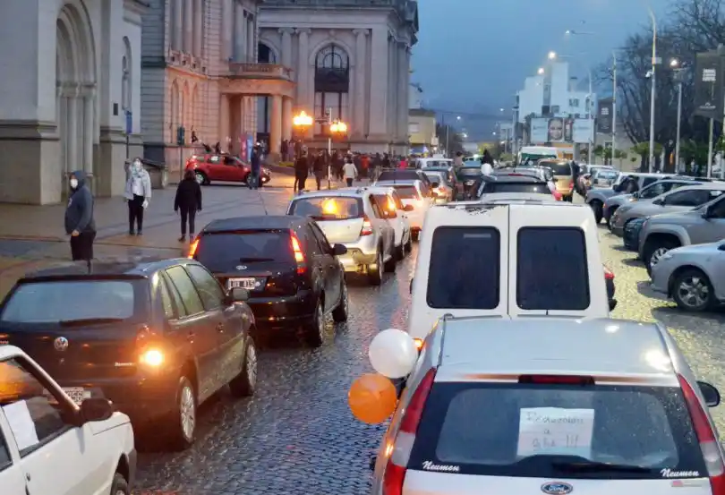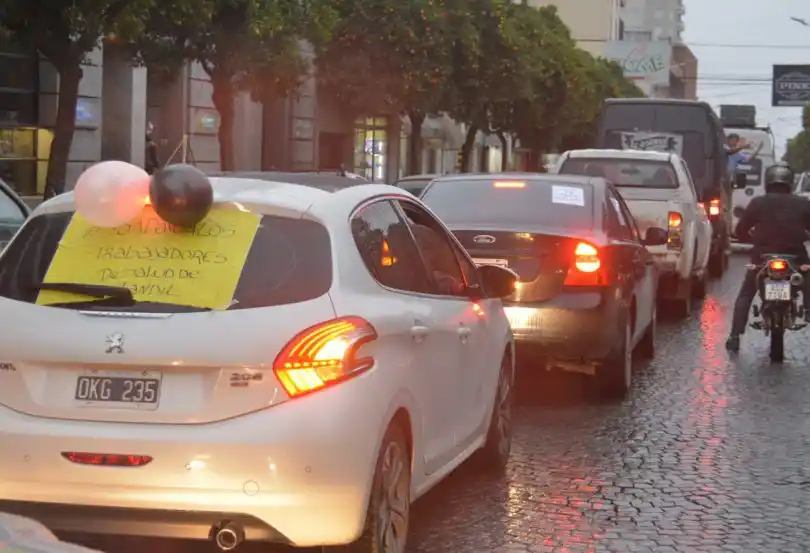 A las 17 puntual la caravana de trabajadores de la salud salió desde el Hospital Ramón Santamarina hasta el Municipio, donde se manifestaron y expusieron sus reclamos, tras cortar la calle Belgrano.