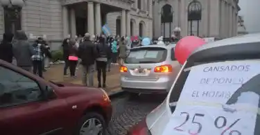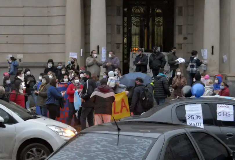 Accedé a las últimas noticias desde tu emailA pesar de la lluvia, los trabajadores de la salud se manifestaron en el Municipio, luego de realizar una caravana con un bocinazo. El fin fue visibilizar un reclamo que llevan adelante hace varios meses y que tiene que ver con un incremento salarial y una jornada de trabajo de 6 horas. “Estamos al límite”, expusieron.