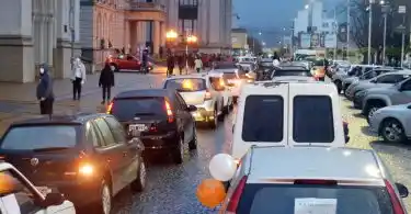 Una vez en la explanada municipal, los trabajadores de la salud de distintas áreas colocaron diversas pancartas en la fachada comunal planteando sus reclamos, tales como “Basta de precarización”, “salarios dignos”, “reconocimiento de insalubridad”, mientras una columna de vehículos que participaron de la caravana permanecieron en Belgrano haciéndose oír con bocinazos.