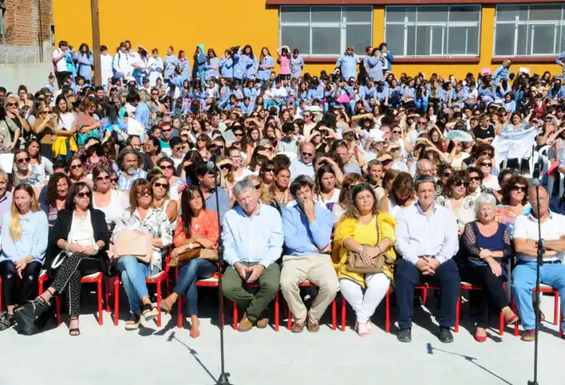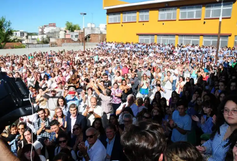 Accedé a las últimas noticias desde tu emailExalumnos, alumnos, exdocentes, directivos y autoridades de otros años, padres e integrantes de cooperadora vivieron con profunda emoción un momento único, tan esperado desde el año 1991, cuando se colocó la piedra fundamental en el terreno. A partir de las 10 comenzaron a congregarse en el patio del nuevo edificio, situado en Sarmiento y 4 de Abril.