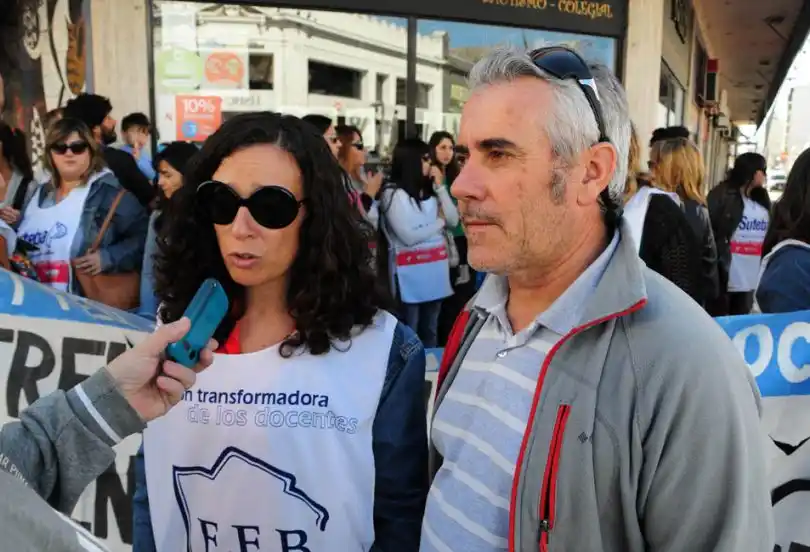 Cecilia Islas y Federico Bidegain, delegados de la FEB y Suteba a nivel local, respectivamente, compartieron su análisis de la situación, más allá del acuerdo salarial alcanzado el lunes, tras definir las bases gremiales la aceptación por mayoría de la propuesta realizada por el Gobierno de Vidal la semana pasada.