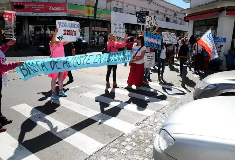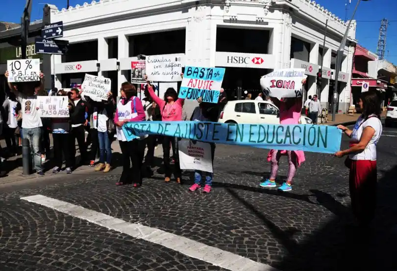 Un grupo de docentes se manifestaron ayer en el centro de la ciudad bajo la consigna "Basta de ajuste en educación". Los irresueltos problemas edilicios y la creciente demanda en los comedores escolares son las mayores preocupaciones a nivel local.