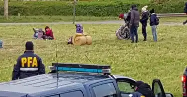 Un amplio operativo de la Policía Federal se apostó sobre el lugar donde realizaban el corte y obligó que los manifestantes del Movimiento 1 de Octubre dejarán la Ruta.