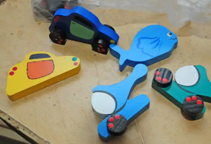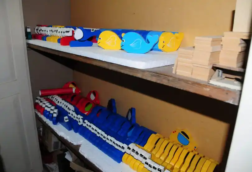 No todo quedó ahí, sino que además con otros restos hicieron autitos, helicópteros, dinosaurios, peces, rompecabezas, memotest y otros juguetes de madera que su esposa e hija con todo gusto pintaron prolijamente. Mientras daba su testimonio, Miguel mostraba una caja llena de ejemplares ya listos y abría las puertas de un placar donde uno al lado del otro guardaban los jueguitos a entregar mayormente hoy, aunque a lo largo de la semana ya fue cumpliendo su objetivo.