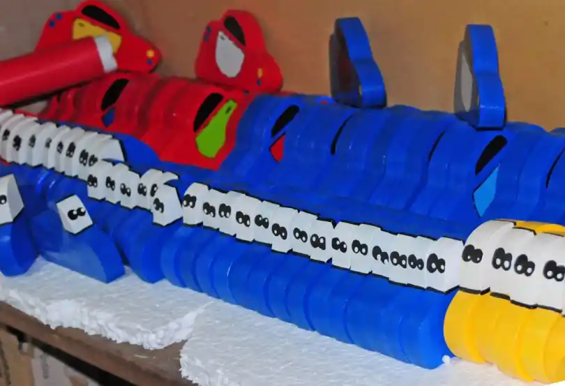 Con esfuerzo y un minucioso trabajo, motivados por ver el brillo de los pequeños ojos que los recibirían, separaron las maderas, recortaron ventanas, las colocaron, hicieron los techos, pegaron partes y conformaron estructura, pasaron los demás restos por la caladora para hacer otras formas que fueron pintadas prolijamente. Vale destacar que no trabajan con láser, o sea que el logro es mayor y artesanal.
