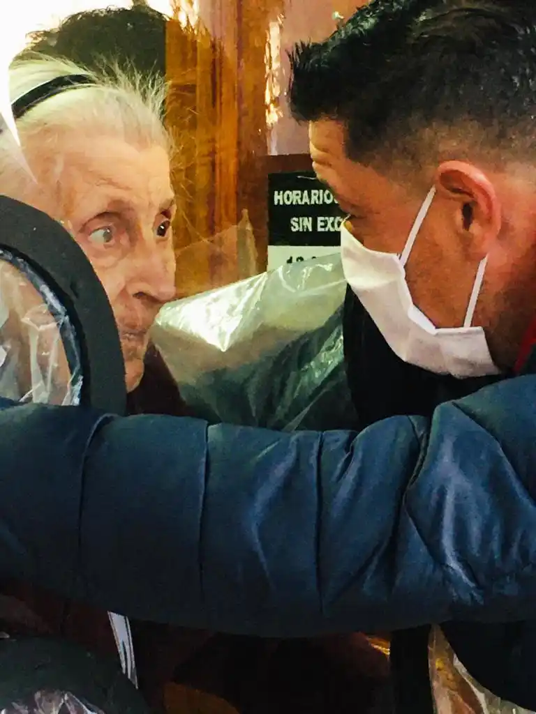 “Yo había hablado con la Municipalidad de este problema que yo tenía y la respuesta era que no podían tener contacto, pero yo pensaba ‘tenemos que inventar algo’. Me decían que fuera a través del vidrio, pero el vidrio es frío, ellos necesitan un poco de calor. Ellos no entienden lo que está pasando. No lo entendemos nosotros que estamos bien, menos una persona grande, muchos de ellos son de campo y jamás vivieron algo así”, manifestó.