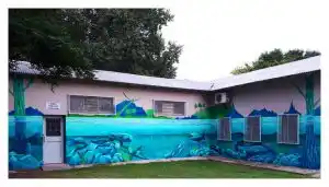 La temática del mural es “Bajo el mar”. Fue pintado por los artistas que integran la agrupación Arte Joven, dependiente de la Dirección de Juventud. Es una obra que incluye tres murales individuales que se conectan entre sí a través del uso del color, el cual genera una unidad visual en quien lo contempla.