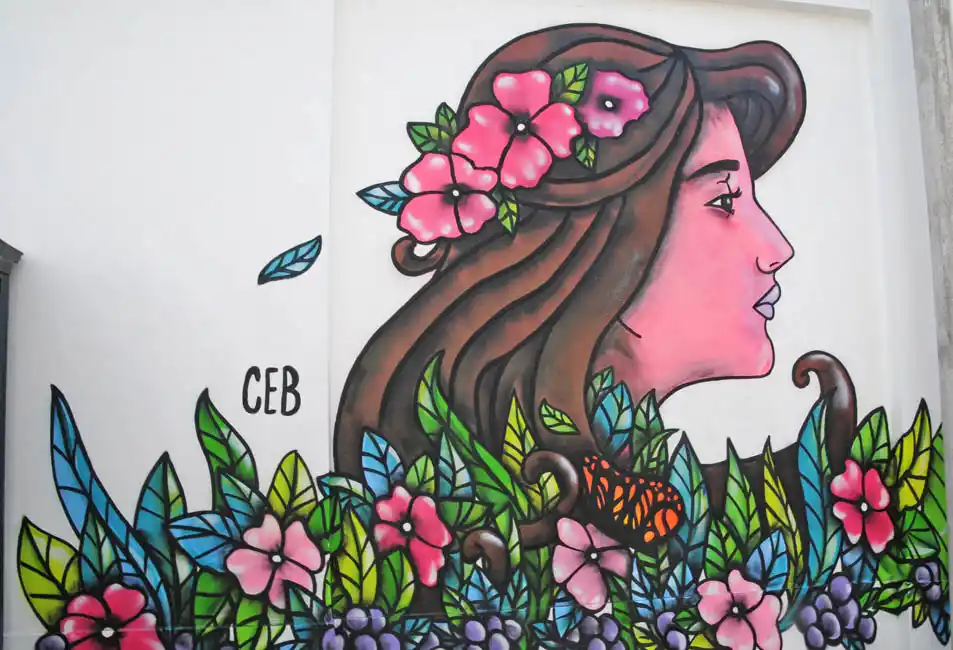 La percepción de Camila no fue diferente, se mostró muy gustosa de haber podido dejar su arte en esas paredes. Así, las caras femeninas, con sus rasgos y expresiones, se entrelazan con flores de colores, pastos y mariposas, dando lugar a que la imaginación no se detenga en un simple dibujo, sino que vaya más allá buscando interpretar esos gestos tan palpables y nítidos.