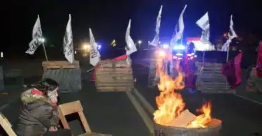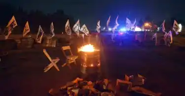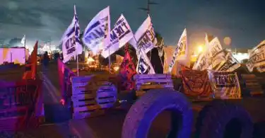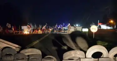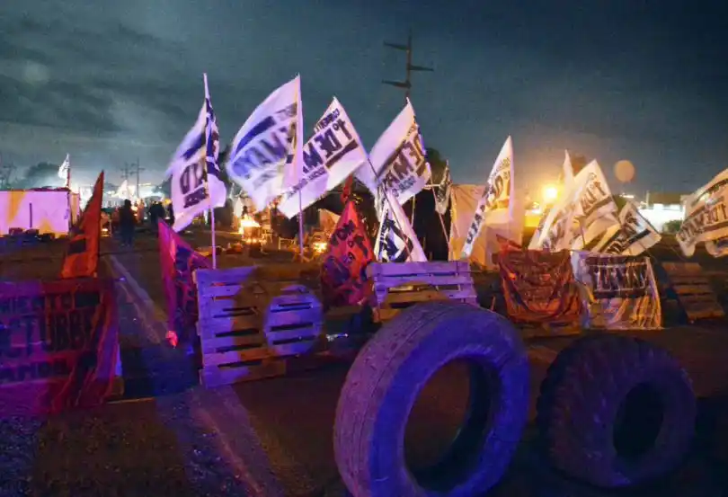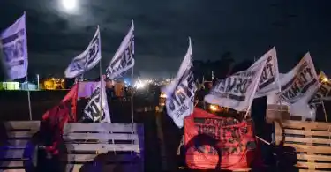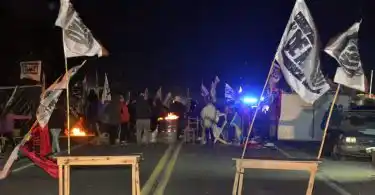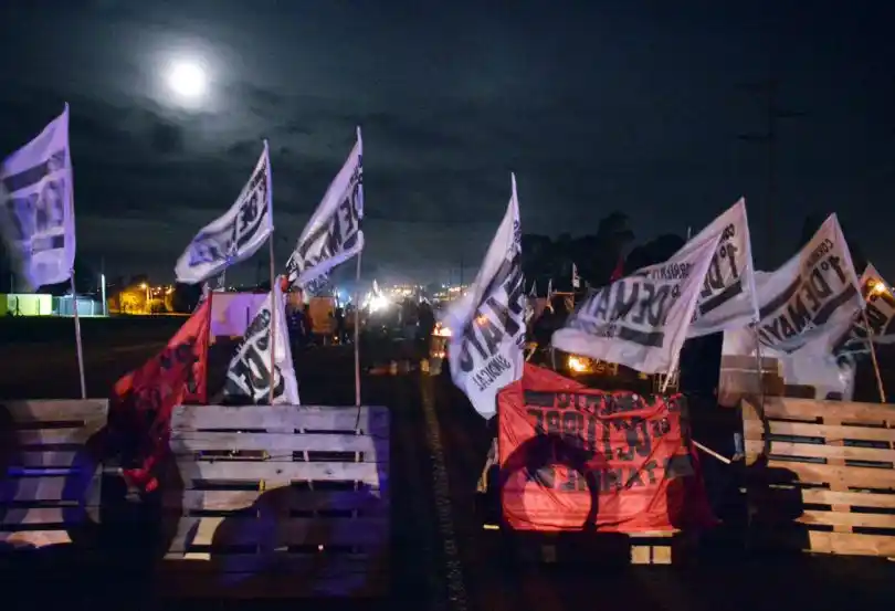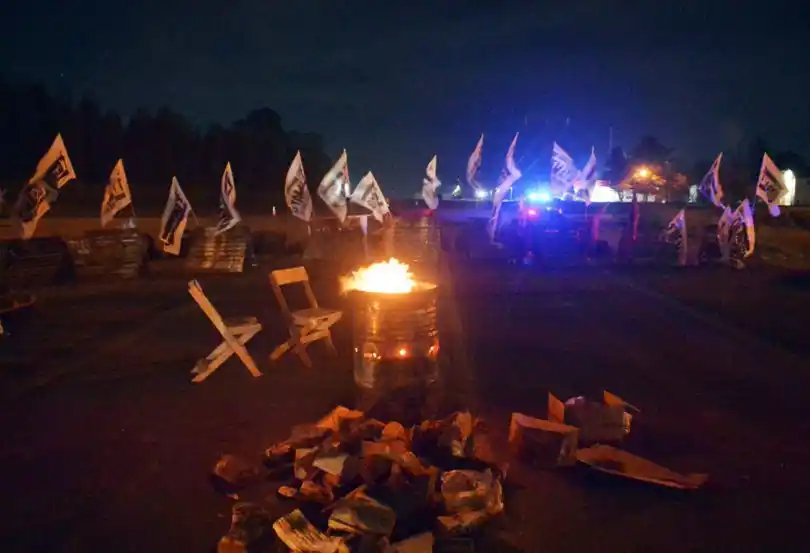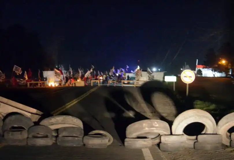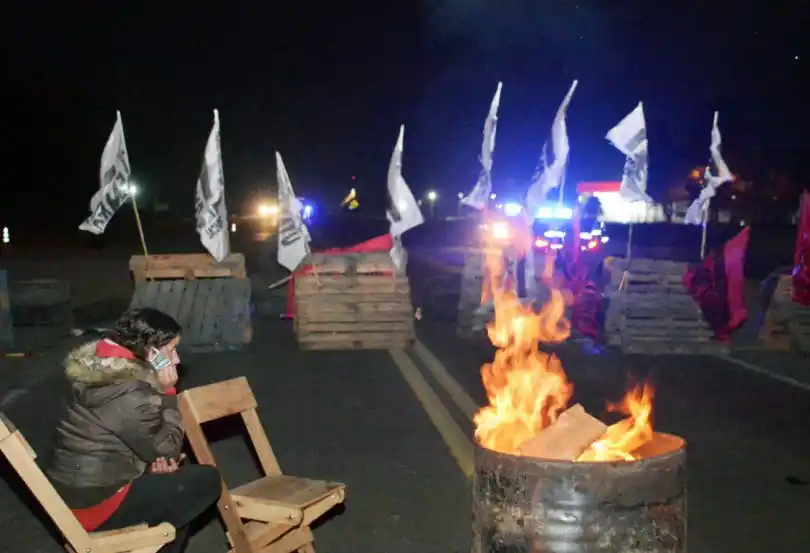 Con un despliegue sobre la extensión de la cinta asfáltica, montaron estructuras de madera cubiertas que sirvieron de refugio para quienes decidieron pasar la noche en el lugar. Además, neumáticos y pallets con banderas de la agrupación delimitaron el acampe a cada lado de la vía de circulación.