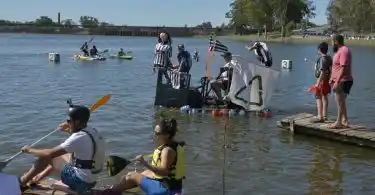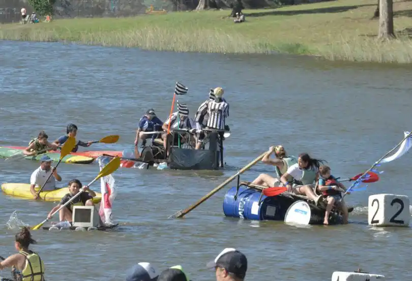 Ayer, en el marco de una jornada a pleno sol que invitó al disfrute al aire libre, se desarrolló la sexta edición de la Regata de embarcaciones confeccionadas con elementos recuperados en el Lago del Fuerte.