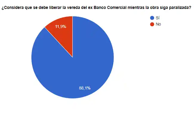 Por otra parte, en la tradicional encuesta que se realiza cada semana desde la página web de El Eco de Tandil se les preguntó en esta oportunidad a los lectores si consideraban que se debe liberar la vereda del ex Banco Comercial mientras la obra siga paralizada.