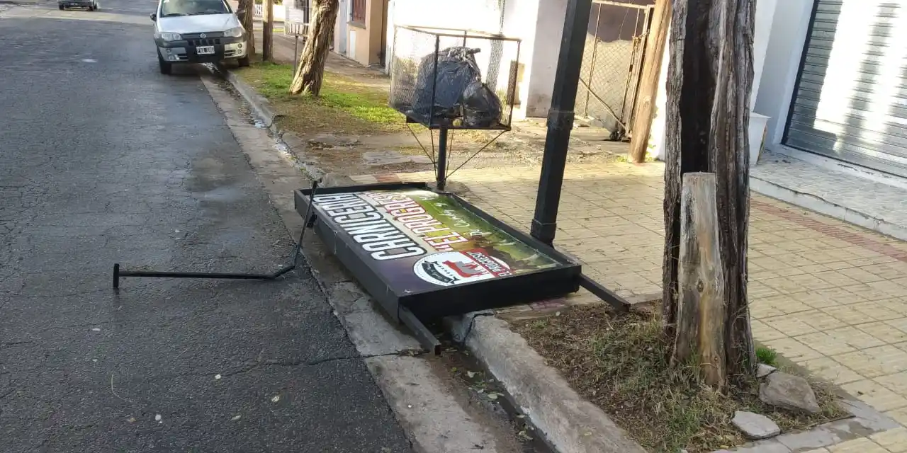 De cualquier manera, no solo fue la vegetación la que sufrió las inclemencias climáticas sino también los propietarios de diversos emprendimientos que amanecieron con los carteles de sus empresas caídos en la vereda.