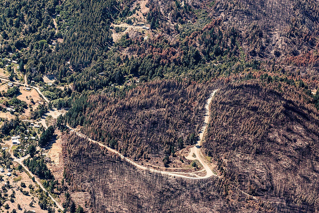 Greenpeace sobrevoló Puerto Patriada, El Hoyo y Epuyén y documentó el grave impacto ambiental de los incendios forestales, que en la provincia de Chubut ya arrasaron cerca de 30.000 hectáreas de bosques, plantaciones, pastizales y viviendas. La organización ecologista denuncia falta de prevención, brigadistas y aviones hidrantes para afrontar con seriedad los efectos de la crisis climática y de los pinos exóticos, que aumentan los riesgos.