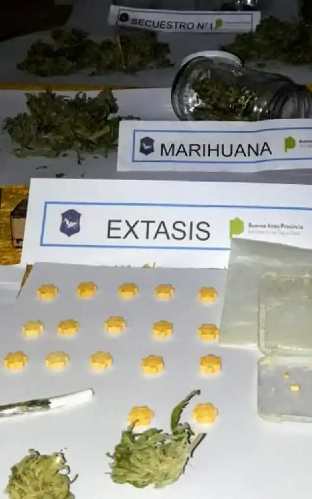 A este joven los uniformados procedieron a secuestrarle en su poder, casi una veintena de pastillas de éxtasis, de color amarillo, y cuyo logo emulaba un átomo, dinero, cigarrillos de marihuana, teléfonos celulares, frasco con restos de flores de marihuana y un mecanismo plástico para el picado de la sustancia para la preparación de los cigarrillos, entre otros elementos.
