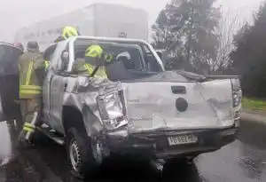 Cuando el personal de la comisaría Primera de Cañuelas llegó al lugar se encontró con la Amarok detenida a mitad de la ruta, sobre el carril de circulación, sentido Cañuelas – San Miguel del Monte, con daños en la parte posterior.