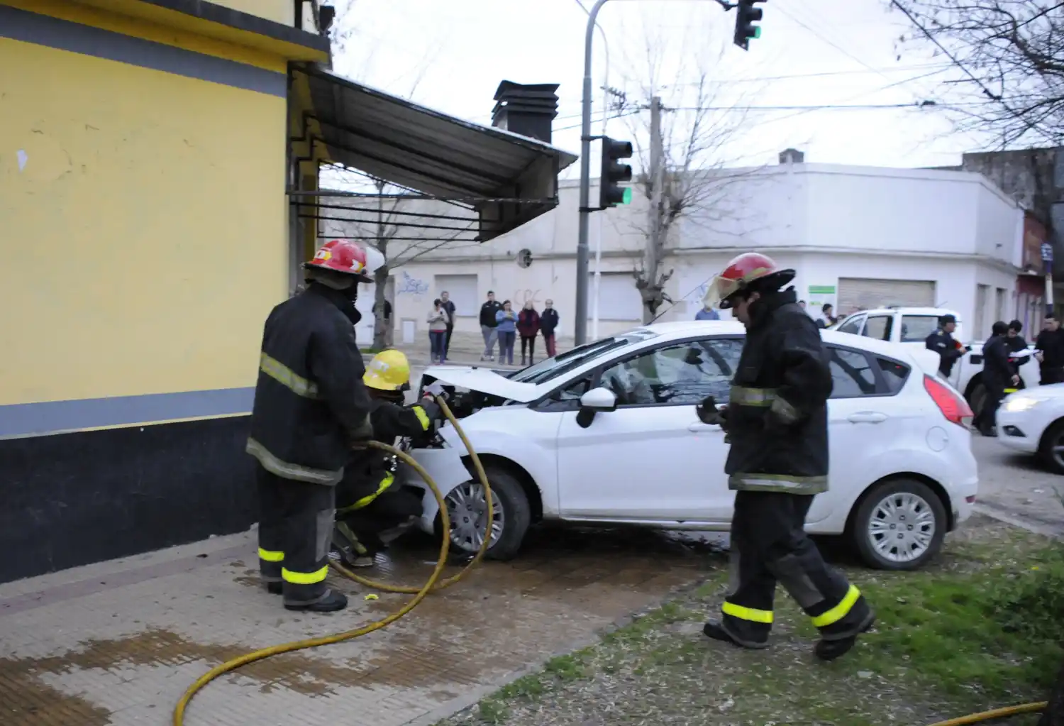Una imprudente maniobra realizada por la conductora de un Ford Fiesta, quien iba acompañada por sus dos hijas mellizas, terminó con el vehículo incrustado contra la pared de la Zinguería Daniel Perniola, que se encuentra en Marconi y Saavedra.