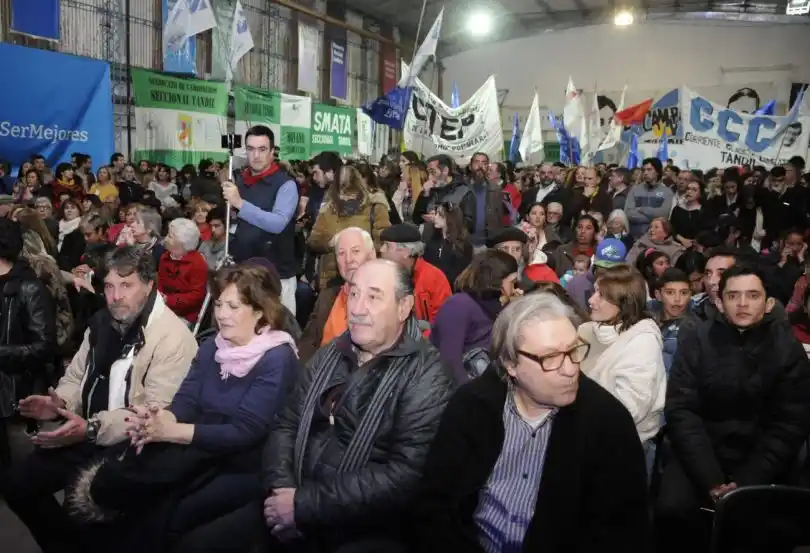 Adelante, frente al escenario, sentados en los primeros lugares de las siete filas de sillas dispuestas de punta a punta del salón, estuvieron dirigentes históricos como el exintendente Gino Pizzorno, el exministro de trabajo y exdiputado Roberto Mouillerón, la exdiputada Nora Chiacchio, Alberto “Coco” Porreca, Rubén Sentís, Corina Alexander, Tony Ferrer y Miriam Iglesias.