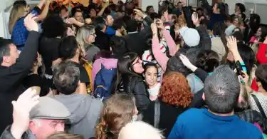 A las 21, con los primeros datos que anunciaba la transmisión de la señal televisiva C5N, se escuchó el canto “vamos a volver”, que se repitió una hora más tarde y luego con intervalos de minutos para convertirse en una arenga constante. Pero poco después de las 22, cuando el presidente Mauricio Macri reconoció que la elección de Juntos por el Cambio no había sido buena, los militantes saltaban de alegría y se abrazaban con rostros felices.