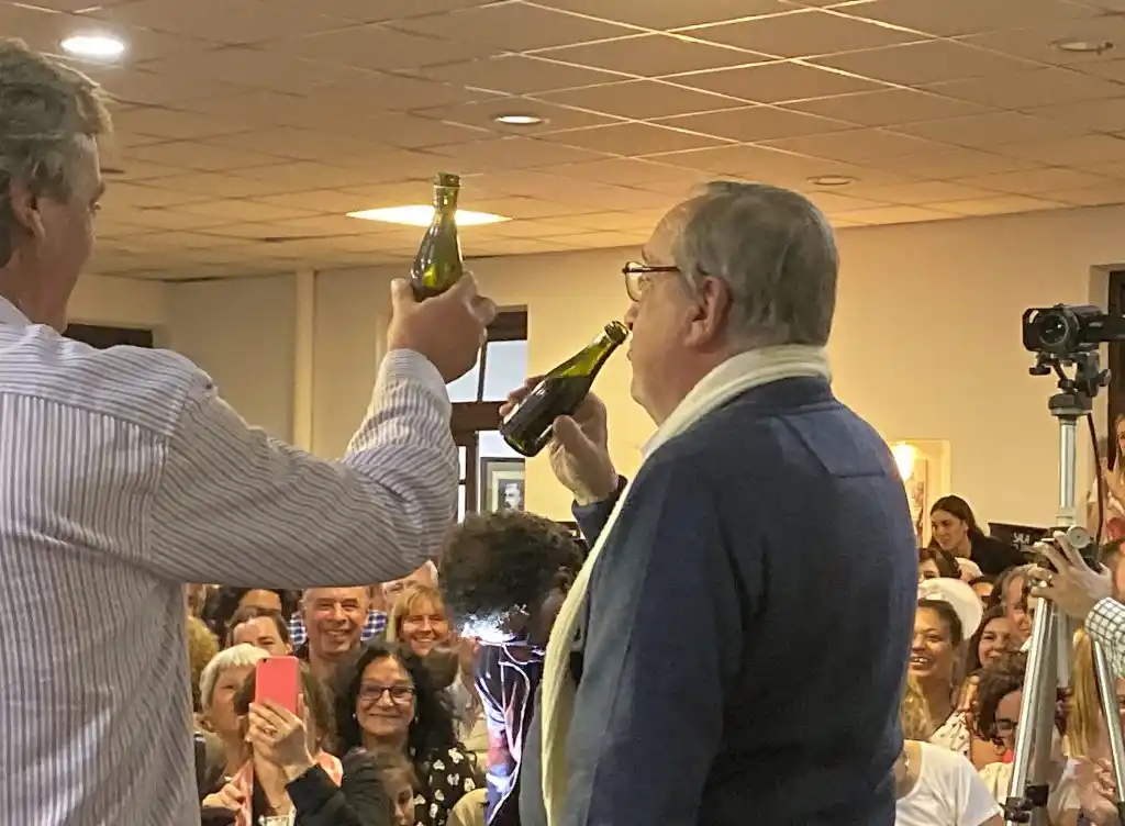 Cuando finalmente terminó su alocución, el presidente del Honorable Concejo Deliberante le entregó su bufanda blanca, la que utilizó como cábala en cada elección: “Ya no se va a presentar más, se la regalo”, expresó y cerraron el encuentro brindando con el espumoso.