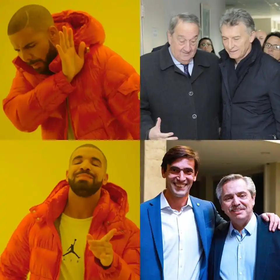 Así por ejemplo, hay varios casos emblemáticos mundiales que se usaron a nivel local. En el meme utilizado en base a la canción del artista canadiense Drake’s titulada “Hotline Bling” , se lo puede ver a Lunghi y a Macri en la opción “No” y a Iparraguirre y Fernández en la opción “Sí”. O el famoso gato en una cena de dos amigas, y la frase “Me dijiste que Lunghi había ganado” y el gato que responde “La interna”. O el mismo flyer de campaña institucional de Juntos por el Cambio que reza “Sobran los motivos”, cambiado por la frase “Sobran los mandatos”.